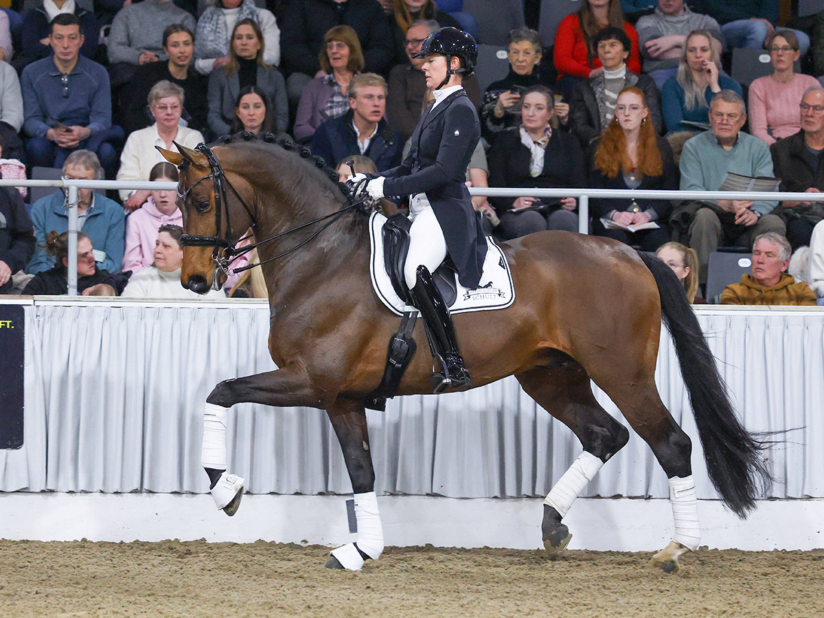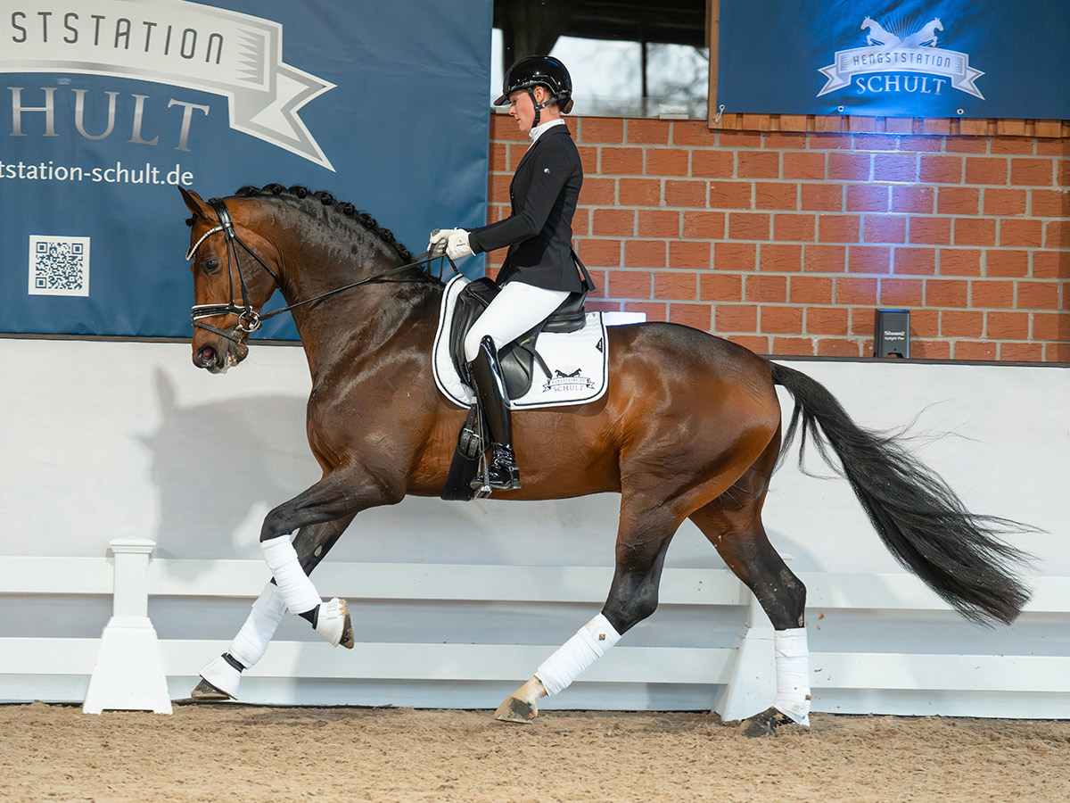 Ein Hengst mit ganz besonderen Reitpferdequalitäten: ESCANENO. Das machte der Hengst aus der Schult‘schen Zucht und dem Gemeinschaftsbesitz des Klosterhofes Medingen und Tobias Schult von Anfang an auf beeindruckende Art und Weise deutlich – und bestätigte das 2025 mit seinem 7. Platz im Finale der WM der Jungen Dressurpferde.